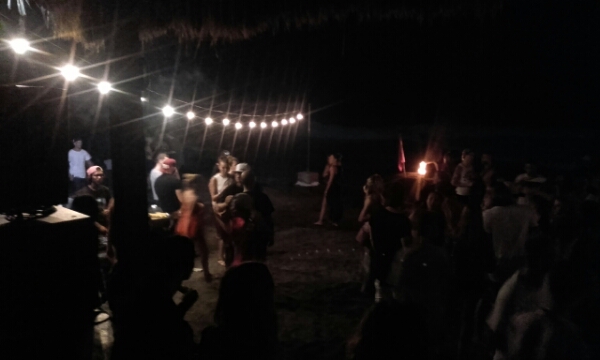 With all the boys there safely and dropped off, I head back to pick up Teresa so we can go in ourselves. Old mans is super crammed, so much busier than at dinner with all the tables moved to make a dancefloor. It’s also a total sweat machine with no air and the hot humid bali temperatures. I end up bumping into the guys from wavehunter hostel so hang out with them; while Tereza goes to the beach to watch the stars. Realising she isn’t liking the bar very much, when she gets back from the beach I offer to ride her back to the hostel since we are sharing the bike and otherwise would be left stranded or I would be later. So for a first day if scootering, I actually end up doing a lot of trips, which is a great way to learn a place.