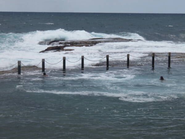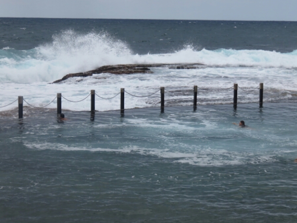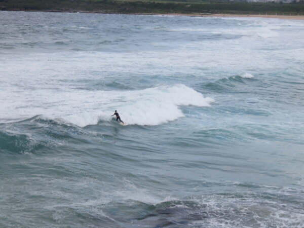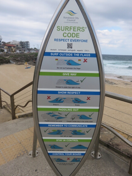 When we get to Maroubra beach it is nice and much bigger than Coogee. Not busy due to the weather apart from surfers out on the water, having fun in what seem like huge waves. Very much a surfer beach, as it even has a board up giving the surfer etiquette and rules, which never seen before.