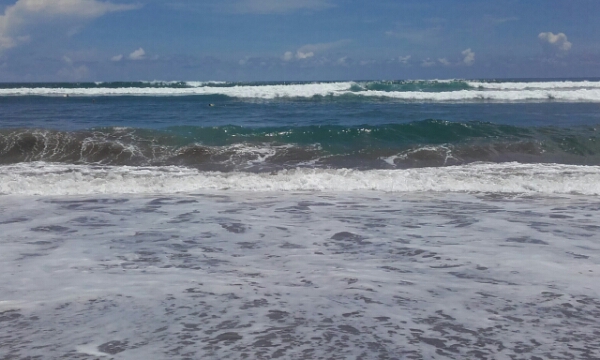 Heading to the beach for the last time with Tereza as still sharing the bike, try to decide whether to hire a board or not as the waves look pretty full on today and I’m not convinced will be very easy. Great waves to watch, but more for the professionals as already crowded too for the amount of waves there are. Plus it starts heavily raining and timewise it is tight as need to get to Kuta and unsure how long that will take.