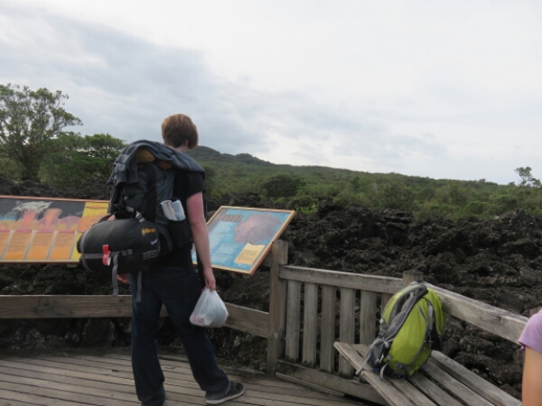 So the main thing on the island is that it is totally a volcanic and there is a defense mount summit. We take the longer route there, which ends up being quite boring. A super long road that looks the same all way long with dark lava rock and odd plants. Pleased when we need to do a turn off to some lava caves as the walk becomes more bushwalk.