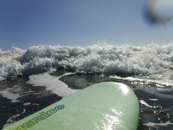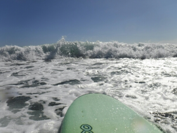 The surf is so cool and get another $35 (£17) for half day which is perfect as bus is at 4.40pm the last bus of the day, so def wanna miss it haha. The tide is far out, but easy enough to get out to and nearest the surf hire easiest bit as doesn’t have the strong current right that makes it so hard to get to the powerful break. When I do get there you really need to not fall off or muck it up after all the effort, so amazing feeling when I manage to catch a decent wave and ride the surf back to the beach. Actually feel like a surfer and doing ok, great feeling as it’s pretty fast too. Working out how to speed up the board and keep it going on waves that are slowing the pace. Staying down for the max 3.5 hours catching up with Norbert from the in town hostel, who is trying surfing for the first time and struggling a little as didn’t want to pay the $90 lesson, which is steep! More than Byron even. Before I go I make sure I get some fun pics with the board and waves, probably should have tried to get some of me on the board too, but waves at end are not that great.