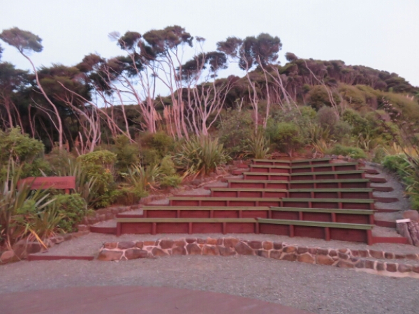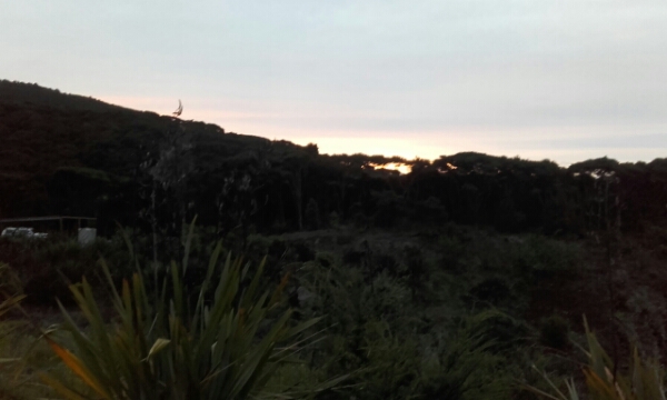 At the lodge jump straight into a nice warm shower as it’s cold and get changed to go for a walk to catch the sunset. As the hostel is set in acres of bush there are plenty of walks, but not enough time really. So I come across a lookout point, which has a great view of the sea and forest. Timing is perfect as the sun is just setting and colours are beautiful pinks and purples. Shame can’t actually see the dun as forest in way, but so relaxing to sit at the lookout and see the colours darken.