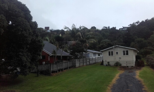 So still wanting to do a small bit of walking, I try a route Devon Scott gave me to get nice views over Paihai by walking along SCHOOL ROAD. A lot of the houses in town are up in the hills so have great sea view of the bays, so this road is the same. It’s pretty uphill and quite hard work with my aching leg, so I only go up to where the roads end, which I don’t think was the right way anyway. With no energy to look for the right way and the rain, I just make the most of the view I have a plot of land for sale where you get a cool panoramic view.