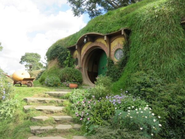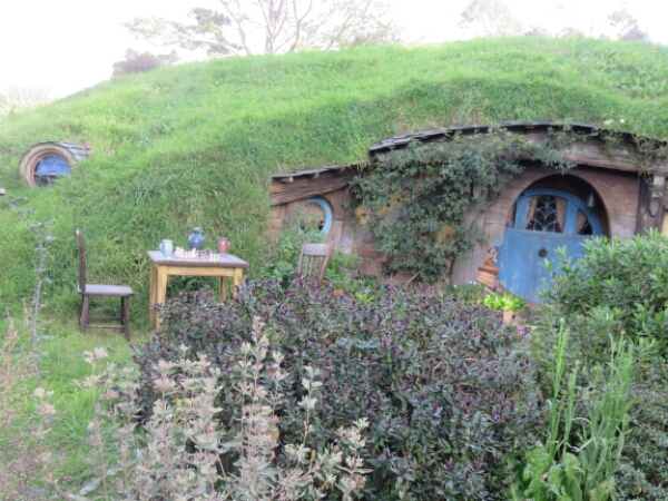 Walking onto the set immediately you feel like in the shire and it’s done to such a high standard and detail. Apparently Peter Jackson is all about the detail. Most of the hobbit houses you can’t go in, so it’s just looking from the outside and a lot have such cool gardens with little props outside like chess tables, chairs, gardening tools, baskets, tables with food or even little tables with stuff to sell on them. So very cute and you really forget as you walk it’s a movie set.