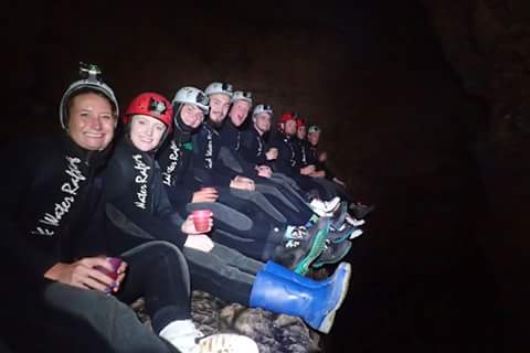 After that we head through the cave to go on the zip wire down to where the water is and we do it in pitch black through the glowworm tunnel – very cool! Then its time for the rubber tubes and floating along the glow worm caves and jumping into the water it’s so cold – icy and it takes my breath away. We get a hot chocolate and flapjack just before very much needed! We also get some info on the glowworms and explains how they are actually a maggot and of 200 layed only 100 survive as are eaten by other glow worms.