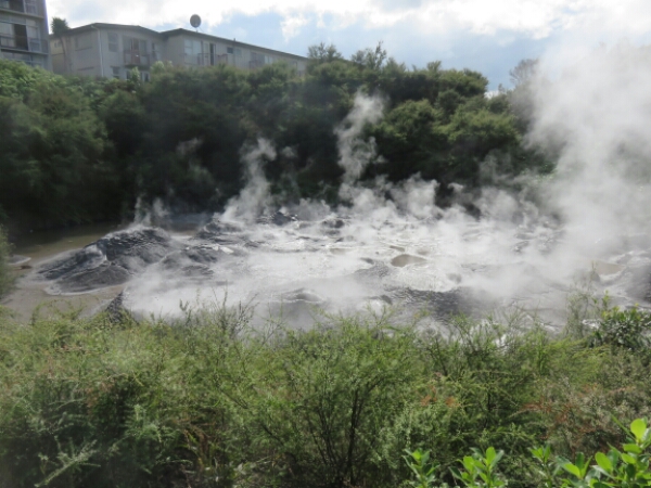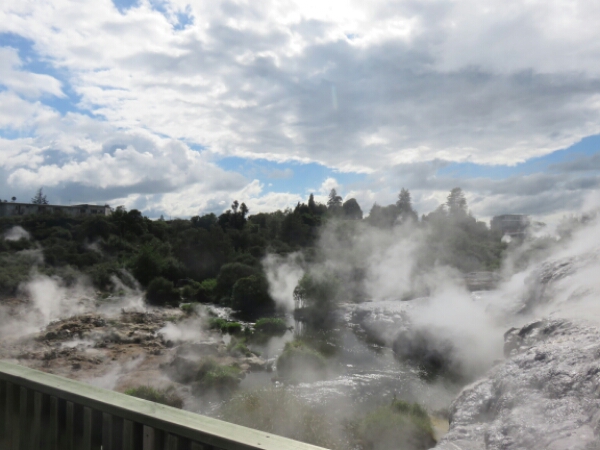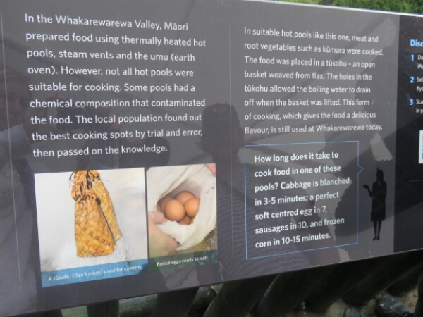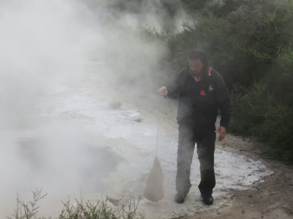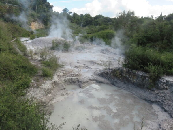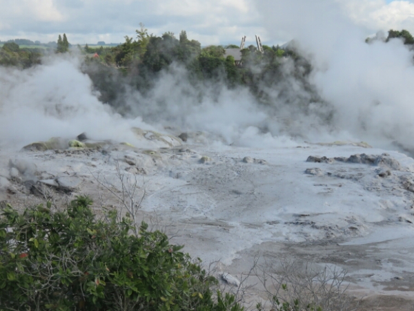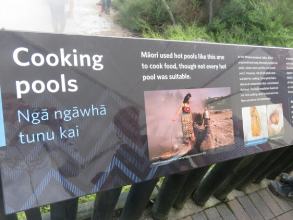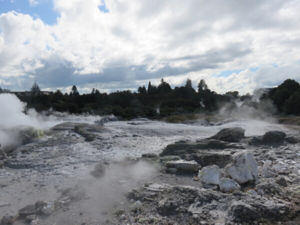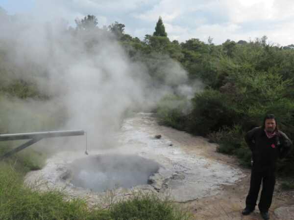 Only taking about 10 minutes to get there, there are only a few of us who go in including Welsh Harry, English Robin and Swedish Ida. The rest of the bus walks to the Redwood trees, which would be lovely, however have already seen them in California, so not a priority for NZ vs seeing the natural hot pools. The first hour is guided and he is a great character very interesting to listen to as he is a mauri and has a lot of cool stories to tell throughout the day. He starts by telling us about the land it’s on and how the super long name of if it came about – Whakarewarewa and even better when he says the name as the “wh” is said as a ‘F’. He also shows us his tattos a bit later on, which is he has a lot of and explains how each one is everyone’s own story and other tribe members won’t be know them such as names of his children, a bear that shows he is a protector of his family and so on.