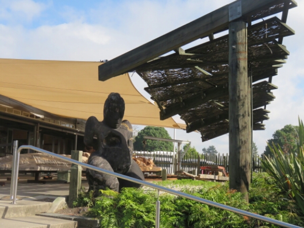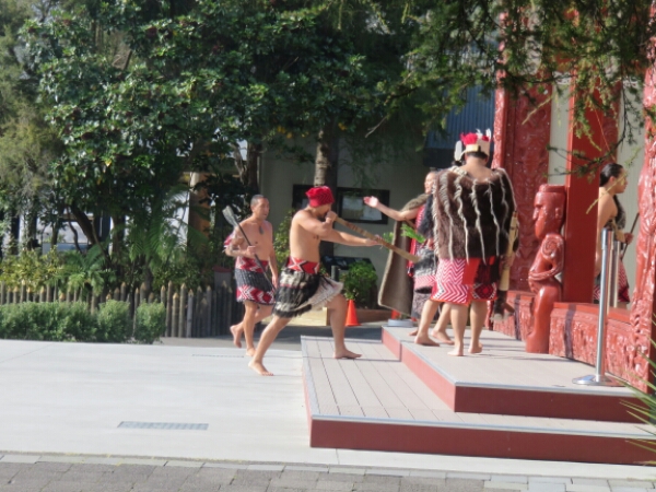 Next we manage to see the start of a culture show they put on through out the day, however you need to pay more to see the full show, but we are able to watch the outside welcoming part which was done when an outside tribe chief person approached a tribes village and they brought a gift it is was peace and not war they wanted. The chief from the village comes out looking very intimidating with tattoos, white eyes and will do a haka dance. The outfits they wear are great big feather and fur costumes. Once that finishes we head over to see the Mauri weaving and look at some of the tools they used for hunting, as it’s like a mini musuem.
