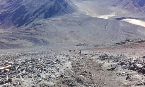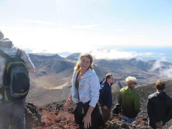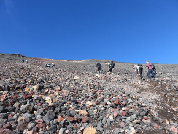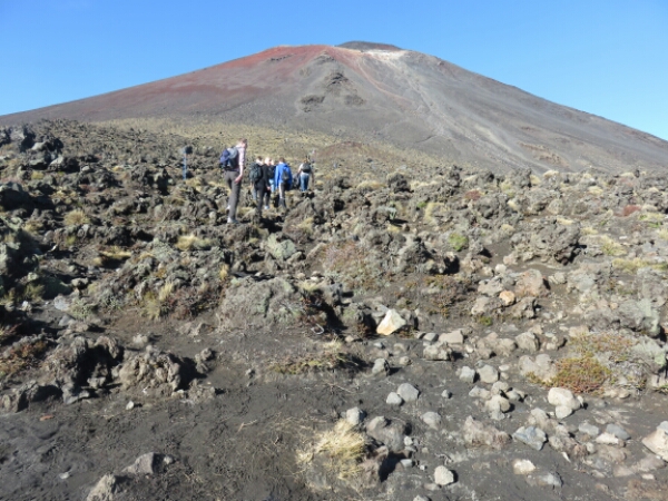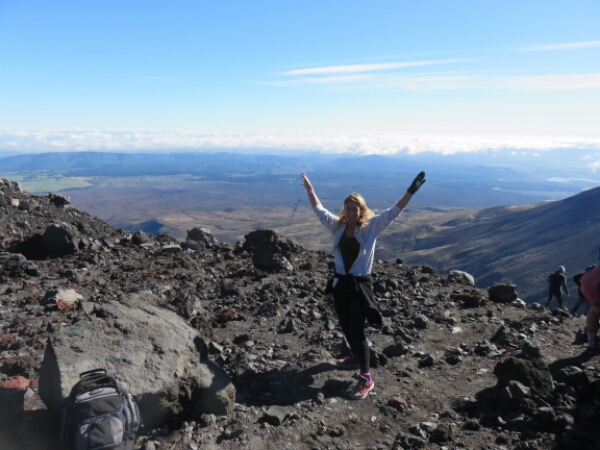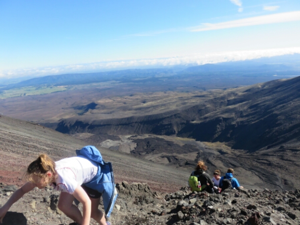 To start with you can walk and climb, but as you go further up the only way to climb it is on your hands and needs as it is impossible to get grip with every 1 step forward it feels like 3 steps back. Thankfully I bought gloves in Taupo and at a bargain price of $4, as I have to claw up grabbing rocks which some are bit sharp, but mostly they are just round lava rocks. The scary thing about the climb is as the rocks are so loose they fall down as you try and get grip and quite a few times have to watch out for rocks coming in your way, with some of them going so fast rolling all the way down and being big and all you can do is shout “ROCKS” and then everyone else below you shouts too to get people to move out of the way, which isn’t the easiest thing when you don’t actually have anywhere to move to. Sadly one girl wasn’t able to move in time and with probably the largest and fastest rock that fell that day was knocked out by it and the rescue ambulance helicopter had to take her away, so makes you realise just how dangerous and serious you need to take it and appreciate your fitness levels just taking your time going up so not too fast to dislodge rocks.