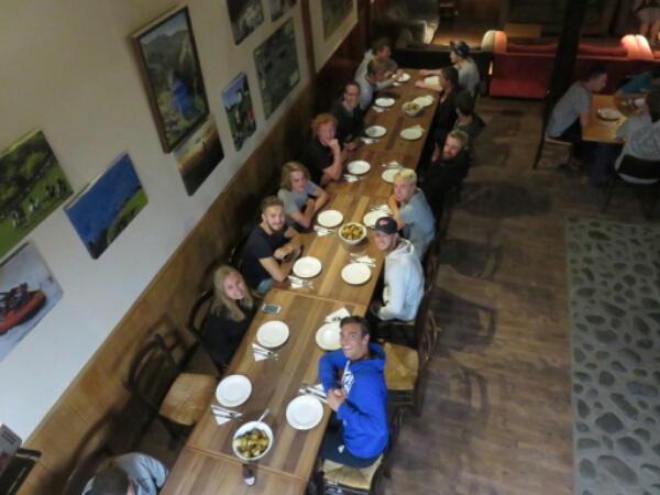 The hostel is cooking up a group roast dinner and so we all go down for that, all pretty excited to be having some good home cooked food. I’m particularly looking forward to the roast potatoes as been a long time. It’s a family run place and has a really homely feel to it and is nice. It has a hot tub spa you can use for $25 for 4 people and nice sauna. It’s an outdoor place so is reliant on the weather and once they said the kiwi bus got snowed in there for 4 days as it’s a valley and right next to the river.