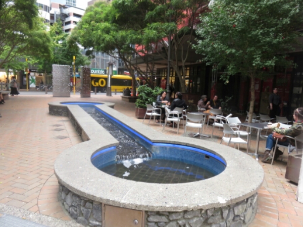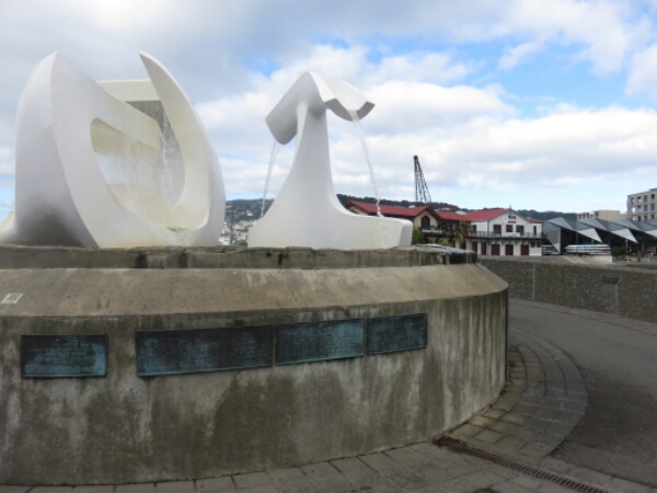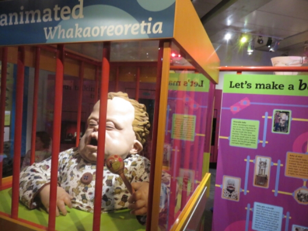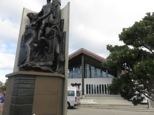 At the top the view is nice of all of Auckland and sea. Not much at the top apart from the CABLE MUSUEN, which doesn’t really have much apart from documentaries it is playing and makes us all laugh as it is abut the local houses all having their own cable cars to get up and down and the stories they tell are quite funny to watch and funny seeing the cable car go up to their house. There is a nice café there and Swedish Ida and I share a carrot cake that is so big and enjoy tea looking out over the whole of Auckland as great views. Staying there for about an hour, we then head to TE PAPA museum via the city, which is sort of interesting. Not a crazy amount to see, but the harbour area is nice with fountains and lots of morred boats in the marina. Even has a set of steps people jump off into the harbour – slightly a mad idea as the water doesn’t look that clean and appealing, but there are a few people doing it.