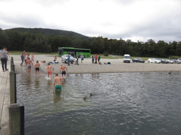 So all looking forward to reaching our next stop of Westport, we again have a long drive stopping for lunch at LAKE NELSON where anyone brave enough jumps into the lake, which is absolutely freezing. Quite funny to see everyone’s face of shock and come out of the water red from where it is so cold. Us girls are all more sensible keeping warm, trying to stay away from the mossies. I decide to feed the ducks some of my left over bread, immediately getting them all flocking to me and looking like they are going to bite my ankles with one particulary greedy one snapping bread from my hands. Amongst the usual ducks there is one that looks very different and has all the colours of the rainbow and stands out from the rest, looking even slightly regal. Not sure what type of duck it is, but cute.