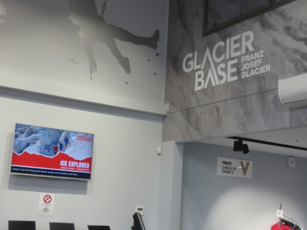 At check in they say that there is a chance it will happen, but the low cloud I spotted is causing a problem with the lift off of the helicopters at the glacier, but as it is still another hour for us to leave they think it will clear so we all get ourselves geared up and ready. The gear they provide is the over trousers, gloves, hat, socks and hiking boots that will fit crampons. We can take small bag that they give, which is just enough for the camera, water and a small snack. The guide has a quick chat to me also trying to find out about my past ACL injury as says that walking on the crampons will put more pressure on them as you need to stamp feet down more, but as I said I climbed Mount Doom ands do a lot of sport he doesn’t think it will be an issue, but just wants to know which is reassuring for me.