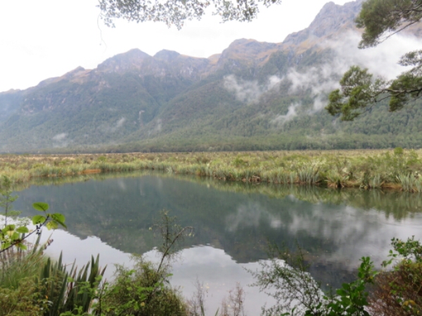 Next is the MIRROR LAKES, which even with the cloud and rain can see the reflection of the mountains. Only a short 10min return walk along a boardwalk, it’s long enough to get attacked by sand flies. Apparently Digger says they are protected so not allowed to kill them, although I find that hard to believe!