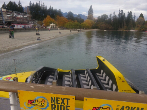 After a chilled morning catching up on things in the room, Ida and I get ready for our jet boat trip on the K-Jet,which we managed to get at good price of $95 (47GBP) and goes across the Queenstown lake, Karawa River and Shotover river as has the longest time in the jet. Starting at 1pm, we manage to get to the front of the boat, which is definitely the best seats as the driver deliberately makes it look it he is going to crash into the bollards in the lake, bridge pillars or tress hanging across the sides. Everyone is very impressed with the driver, who is a cool kiwi guy that managed to get into jet boating just by doing a holiday job and knowing the right people as do most of the fun tour trip people who have experience in whatever they do.