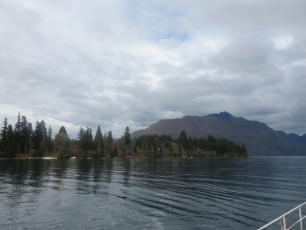 So starting off on the lake he tells us that when he is going to do a spin he will circle his arm in the air, so that we all hold on. So he does a test one on the lake and it’s pretty fun doing the 360 turns and fast too. he says that he will do them faster next as just wants to check everyone is OK, which is nice. So going across the lake the views are awesome as you have the Ben Lomond in the distance, the autumn colours of the trees and the remarkable mountain range that seems to tower over Queenstown. Really scenic.