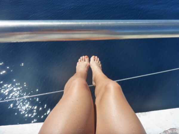 At mana the boat is there so can jump straight on with the usual transfer by small boat first. As soon as we get on it they give us cava although not the nicest and cakes. We sit on the very front of the boat dangling our legs over catching the sun and get the good views of all the islands we pass. They do look all the same a bit been mountains but cool none the less. It is quite rocky out so keep the alcohol mainly until later with just a wine after the cava again not so nice.
