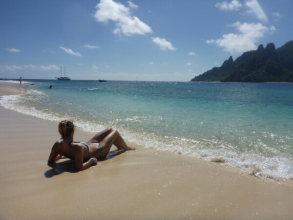 leaving at 9am Minh and I have plenty of time to grab breakfast before going on our sailing trip. Minh booked it last minute and at $220 Fijian it isn’t bad value to visit new islands and get lunch, wine and beer included. We end up having to wait a long time for the connecting ferry to Mana where we board seaspray and it is very Fiji time. Not many on the boat just 2 Aussie girls over for a wedding making me think Fiji would be a very cool place to get married however definitely not convenient.