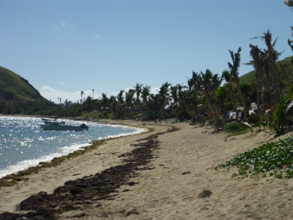 After we have a short walk around the village and you can see how impacted it was from the cyclone as the palm trees are all stripped back and looking very sorry for themselves. It’s interesting how the village works with a small town hall where the town meet weekly to discuss any issues or crimes. They have solar panels here and seem quite equipped for being so remote with deliveries sent weekly. There is also a cute little church and school that we don’t have time to see.