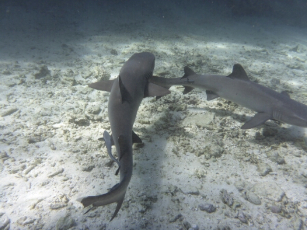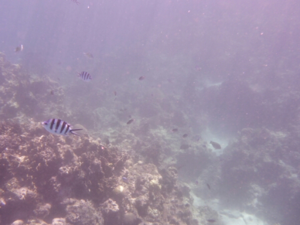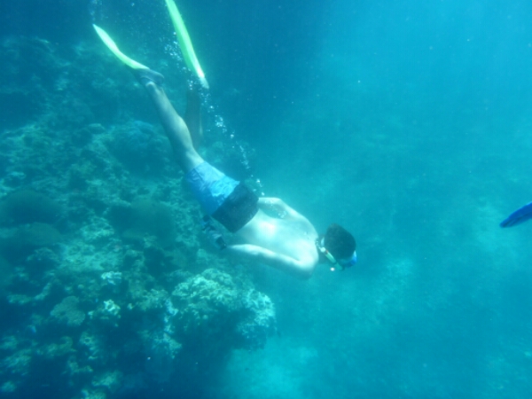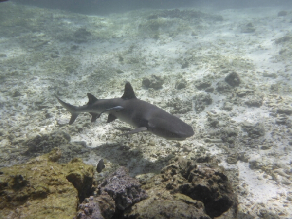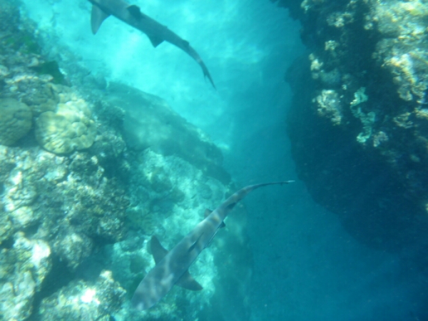 As soon as we arrive they are doing a shark snorkel, which go along to check out as it is only $45 (£17). Taking about 20mins in the boat we head out to a set of waves in the ocean indicating that the reefs there. Immediately we see REEF SHARKS which are not aggressive and pay no attention to humans, if anything they are scared. Staying around the area we see about 4 sharks swimming in circles and keep returning. There is an open area with a centre rock that most seem interested in, maybe it has food like an octopus. A guide from the other boat shows me a moray eel and a mini cave you can swim under to see stuff by diving down a little bit. Again really friendly as he doesn’t need to do that as not my tour.