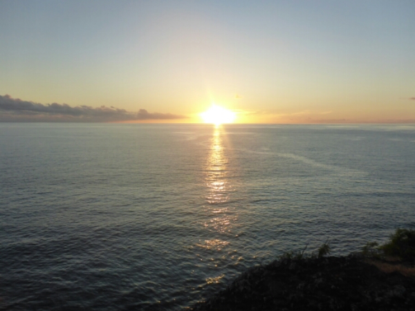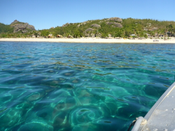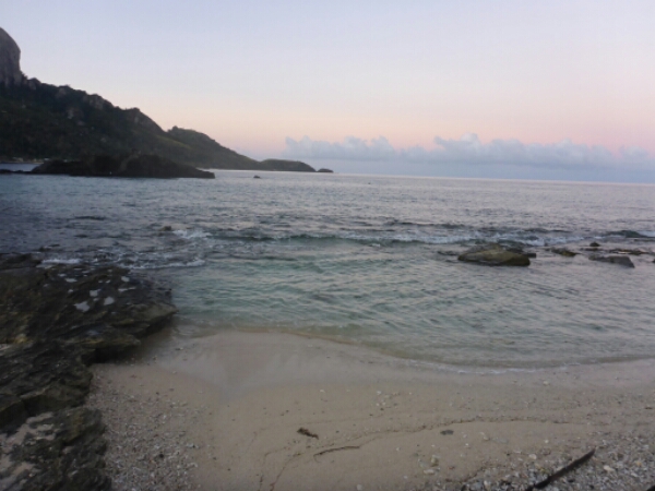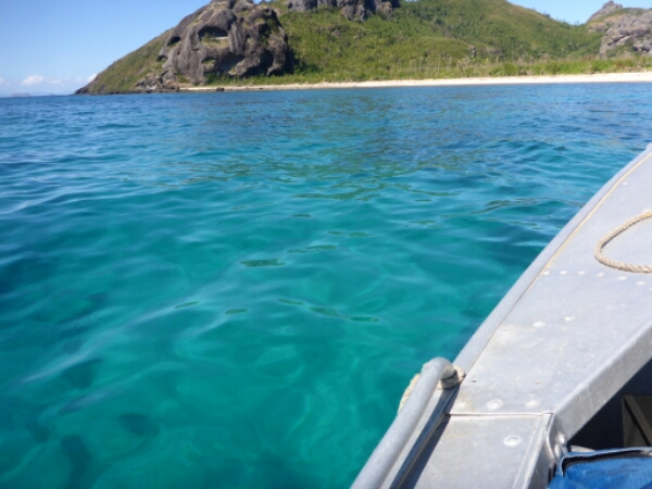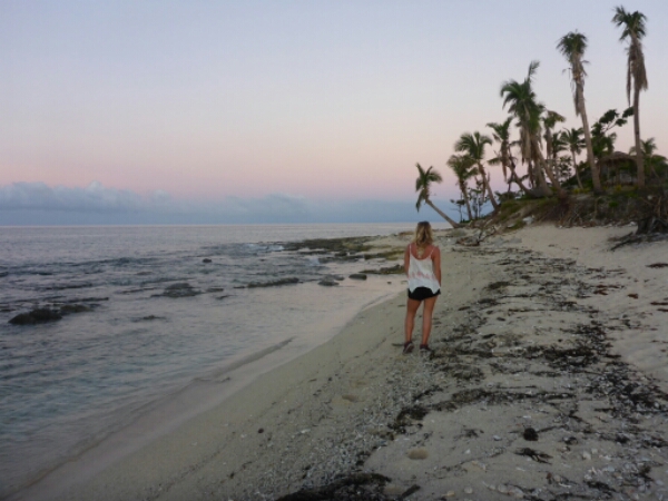 He points out the main rock of the island that sort of looks like a face and tells us that is the rock used in film Castaway – the scene where he is with wilson the ball. It does look familiar. The places he shows us all have amazing views and are quite high up. We end up with a couple where can see the sunset and the sunsets are always beautiful in Fiji as very clear and orange skies. We can only stay until just before it goes down due to having a night snorkel booked in, although heading down it is actually very close and only takes 5 minutes so could have spent longer up at the top really. So as it isn’t totally dark yet, while we wait for the night dive to start, Michelle and I head to the bar for cider. It’s a nice vibe at the bar ad we get chatting to the owner a South African guy, expertise in diving who lives in Airlie beach running dive trips there. he mentions his cousin is a well known shark diver in cape town and has done documentaries there, so something I need to check out.