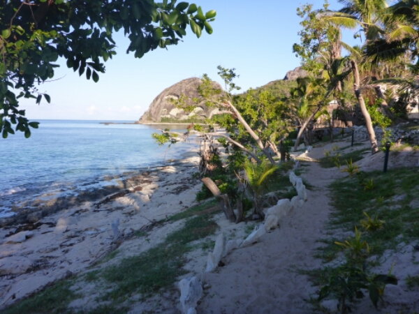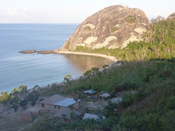 After the boat leaves around 4.30 Michelle and I go for a hike up the hill that isn’t too hard a walk and we are lucky as get a free guided tour. One of the workers tells us we are walking in the wrong direction so shows us the right way only to then take us to three nice spots up on the hills that we would never have found as have to climb over boulders and go routes not on path. The guide is lovely so friendly and even is holding the whole way a piece of pipe he was actually on his way to fiz and stopped to help us. He is very knowledgeable and tells us history of the village and living on the island, especially talking about cyclone Winstone which hit them hard. They lost a few bures and village houses, so why they are doing so much maintenance here.