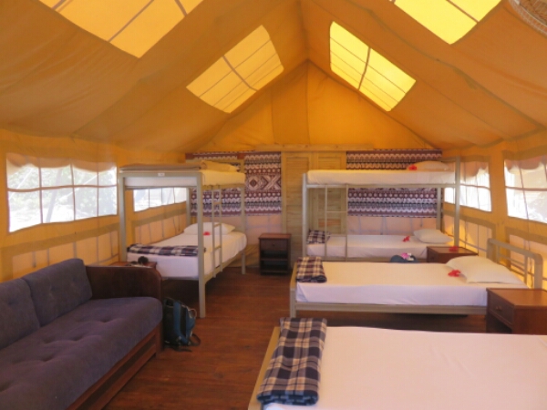 Back from the shark snorkel in time for lunch, which is a quite tasty chicken wrap and chance to check out the room properly, which is really nice. In a different room to Michelle who is in the beach dorm, mine is a luxury tent I have all to myself with six beds so is cool. No plug socket, but since there is no wifi it doesn’t mater so much and I can just charge it at the bar. The showers are nice with big rain shower heads even though it is a bit of a walk to them.