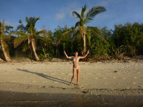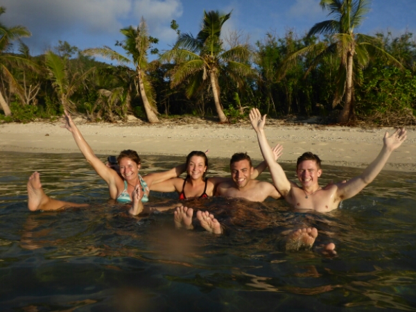 After a not so long journey of an hour to Korovou as it is on route, I arrive around 3pm just in time for afternoon tea. Getting onto the island here is quite cool as the boat takes you up to a path that is revealed when the tide is low and so can walk right up to the beach. I can see kiwi bus Chris and his mate siting up the top of the restaurant and it is nice to have some non couples and mates after the blue lagoon. On my boat there are 2 English girls I also met at beachcomer who are really Nice called Jasmine and Mia.