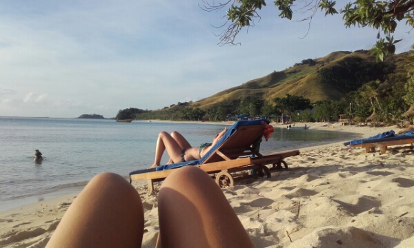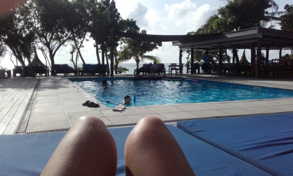 The rest of the afternoon after the tasty lunch and cold beer is spent chilling around the pool area as there are some really comfy big mattresses all around the pool area and with great sea views its great chance to catch-up on blog and pictures. Once the sun starts leaving the pool area, I catch the last bit of sun on the beach and try out my cheap snorkel I bought in Christchurch, which isn’t too great as the mask leaks but OK enough to be able to see all the amazing fish just off the beach.