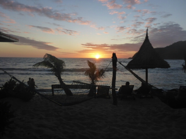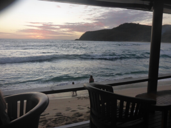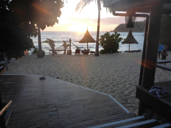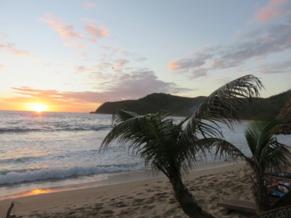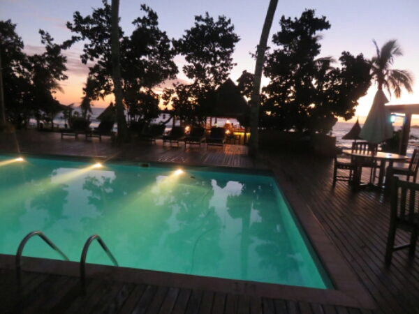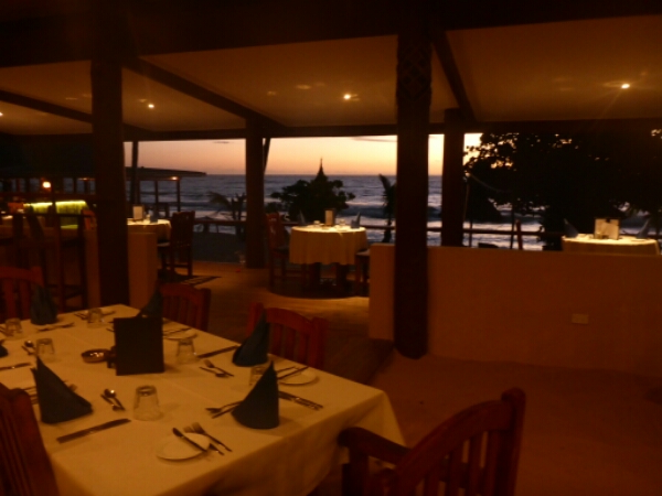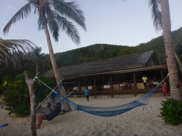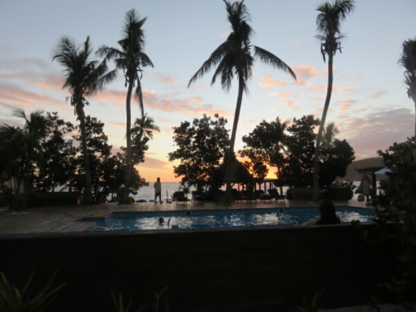 So after watching another amazing Fijian sunset it is time to get ready for dinner, which is Al Carte so exciting. The girl in my dorm Simone is nice from germany and I head out to dinner with her, as she is travelling by herself. She knows a few people already and we sit at their table a nice family from Auckland and Wellington. A couple who are engaged with their parents and it is interesting to chat to them. The food is great quality and has the reputation to be the best in the yaswara island. I order soup to start,a beef escalop with nice potatoes and cheescake for the pudding. All very nice and in between get sorbet to clear the palet.