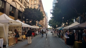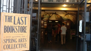 After leaving the market I try to steer myself back on course to the station and to find the Walt Disney concert hall and broad museum. So the route back takes me via The Last Bookstore which is well known and people spend ages in there looking at art they have up as well as being able to exchange books, CD’s etc. At the end of the road there is a urban market on, which is only hosted once a year and selling unique branded stuff like candles, t-shirts, wooden furniture and beauty creams.