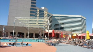So with a clear day ahead and the weather hot as standard here, a few of us from the Afrojack night out decide to head to the pool at the STRATOSPHERE. The hostel promotes a self guided tour, where you have to sneak your way into the hotel as they will charge $10 otherwise however they rarely check.