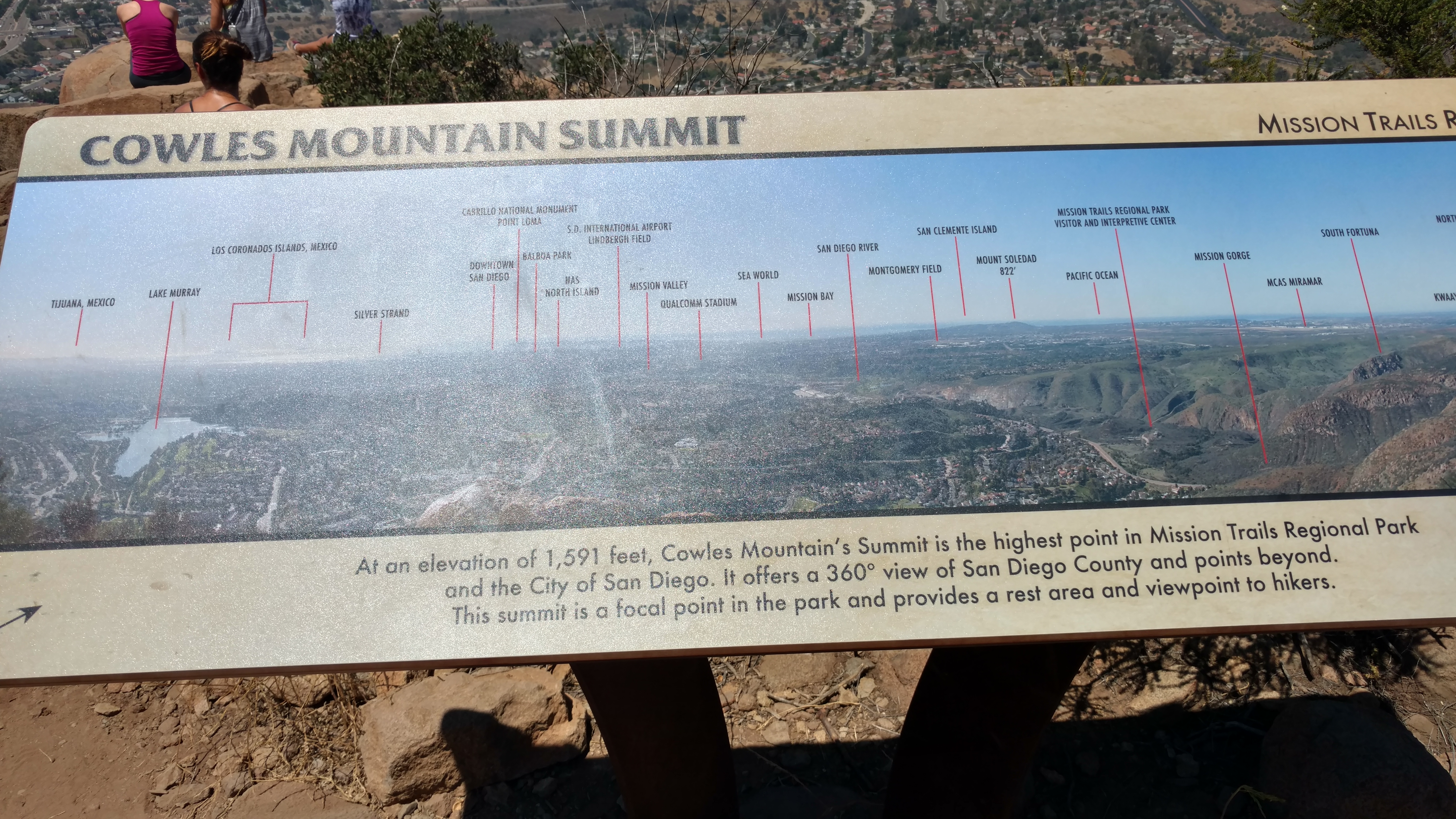 At the top it feels like are rewarded with such a beautiful view – 360 degree view with signs showing all the key spots like sea world, Balbora park, Coronado so really good if you get a clear day and no smog like there is a little bit of today. It’s a nice place to just sit and chill for awhile enjoying the views, but we need to get back so head on down after about 15minutes and it is a pleasant walk down just chatting away to the Irish lecturer as his work is really interesting. By the time we get down our lift back to the hostels is pretty much there and looking forward to getting back and having a cold shower.